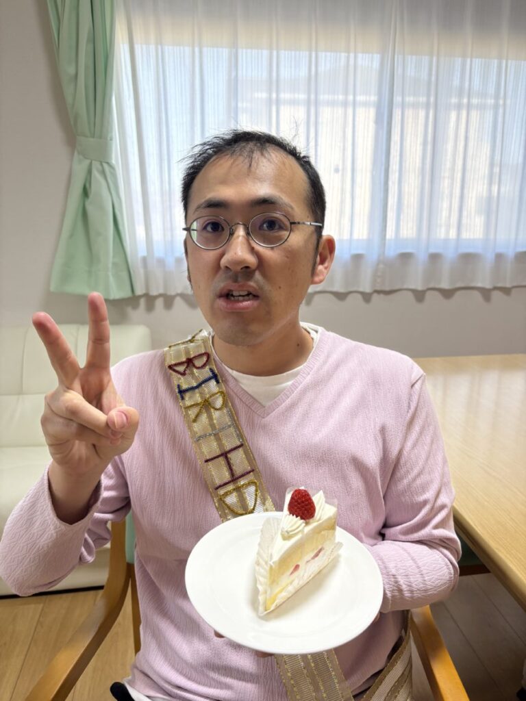 誕生日会を行いました! 2026年04月17日 共同生活援助・短期入所活動報告 グループホームふれあいの家でも、誕生日会を行いました。 お誕生日おめでとうございます☺ 今月は外出レクリエーションもあるので、楽しみましょう✌✈